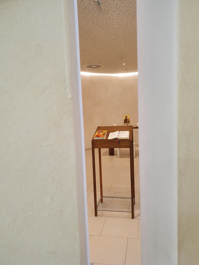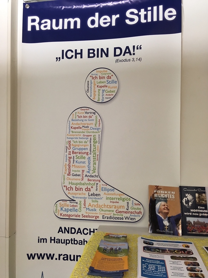 Vor der Heimfahrt konnten wir uns für einige Minuten im Raum der Stille von der Atmosphäre und der Wirkung dieses Raumes überzeugen. Falls Sie in Wien am Hauptbahnhof sind, gönnen Sie sich Zeit zum Innehalten, zur Andacht, zum Gebet ...