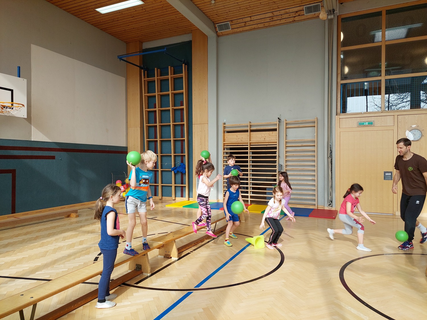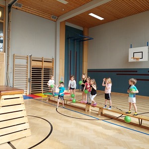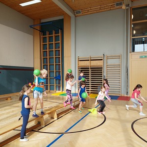 Immer wieder sind wir in der Schule eingeladen, damit sich die zukünftigen Schulkinder in ihrer neuen Umgebung besser zurechtfinden. Besonders lustig ist es, wenn wir zum Turnen in den großen Turnsaal kommen dürfen. Aber auch Vorleserunden und andere gemeinsame Aktivitäten sind für die Kinder eine Bereicherung und tragen dazu bei, dass der Übergang ins Schulleben gut gelingen kann. Auch Besuche von den Schulkindern bei uns im Kindergarten sind immer ein fröhliches Ereignis.