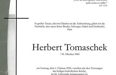 Herbert Tomaschek, geboren 1960 in Thörl, war ein Mensch mit wachem Geist, feinem Humor und großer musikalischer Begabung. Am Sonntag, dem 1. Februar, am Vortag zu Mariä Lichtmess, schloss er für immer die Augen, nachdem er infolge plötzlicher gesundheitlicher Probleme im Krankenhaus im Kreis seiner Familie verstorben war.