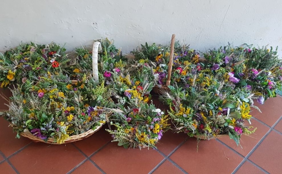 Am Mi. 14. Aug. um 13.30 Uhr im Kloster der Pfarrkirche. Wer Blumen, verschiedene Kräuter, Getreide, Weinlaub, Bindefaden und Gartenschere übrig hat kann dies gerne mitbringen.