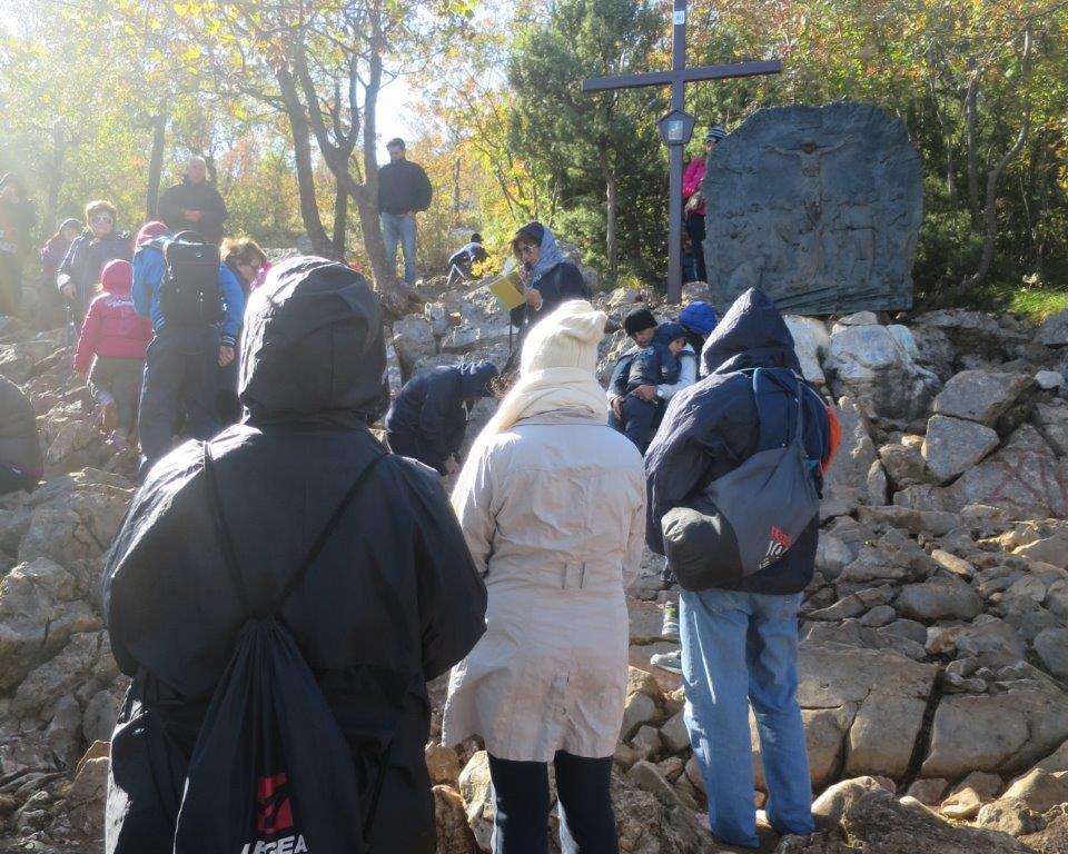 Den religiösen Höhepunkt bildete der 3.Tag, an dem wir am Vormittag den Kreuzberg bestiegen. Das steinige und steile Gelände setzte uns zu, die einzelnen Kreuzwegstationen aber gewährten uns Gelegenheit zum Atemholen, zum Gebet, zur Besinnung auf wirklich Wichtiges in unserem Leben. Genauso steil und steinig bot sich uns am Nachmittag der Erscheinungsberg. Wieder waren die einzelnen Stationen und der Platz, an dem die Gospa erstmals den Kindern erschienen ist, Orte der Ruhe und des Gebetes.