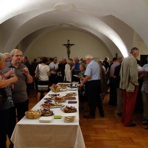 Mag. Hans Paier organisierte eine wunderbare musikalische Umrahmung der Eröffnung mit einem Grazien-Geigen-Trio und einem Doppel-Männer-Terzett des Kirchenchores. Abschließend gab es noch ein köstliches Büfett im Pfarrsaal.
