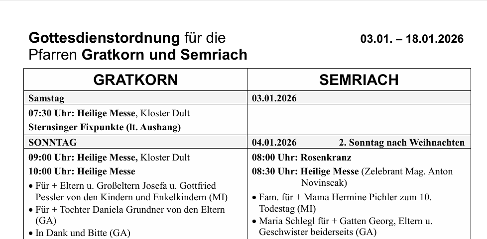 für die Pfarren Gratkorn und Semriach im Seelsorgeraum GU-Nord