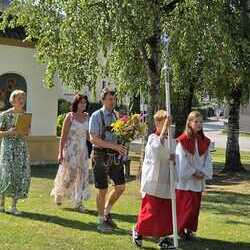 Wer war bei der Fronleichnamsprozession dabei (als wir beim Sorger vorbeimarschiert sind)?