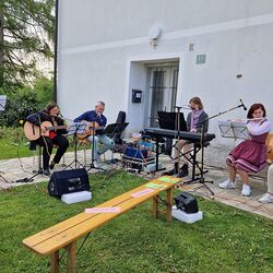 Im Anschluss an die schöne Feier waren alle zum „Pfarrcafe“ geladen, den der Kirchenchor mit viel Liebe vorbereitet hatte. Neben Kuchen und Kaffee genossen sichtlich alle das Zusammensitzen bei netten Gesprächen - und die Kinder das Spielen miteinander.