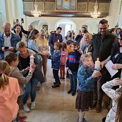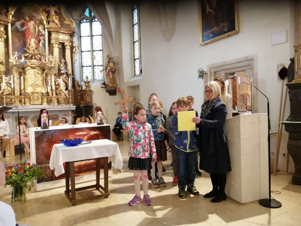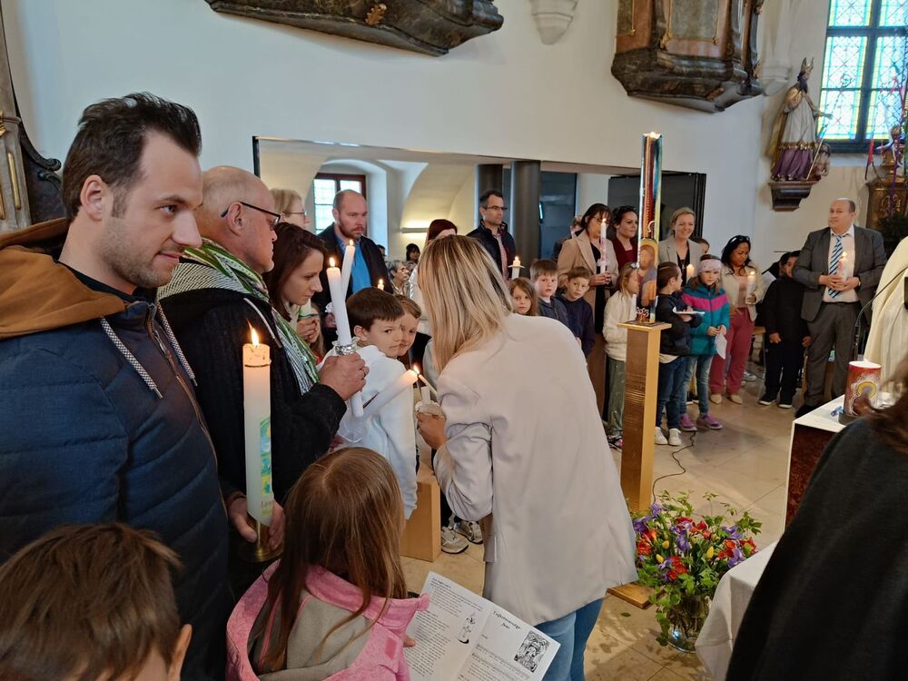 Am 22. April feierten die Erstkommunionkinder nach ihrem letzten Workshopnachmittag ihr Tauferneuerungsfest um 16:30 Uhr in unserer Pfarrkirche.