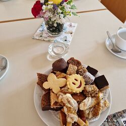 Beim anschließenden Pfarrcafe des Kirchenchores setzte sich diese freudige Stimmung fort und alle genossen bei Kuchen und Kaffee oder Tee die nette Gemeinschaft!