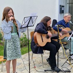 •    an die sechs Musiker, die in ihrer Freizeit unseren Gesang unterstützten und den Gottesdienst feierlich mitgestalteten: Chiara und Katharina Guggi-Bärnthaler (Querflöte), Helma Arjmand (Geige), Ursula Schrei (Gitarre), Maria Kleindienst (Gitarre) und Michael Krenn (Bass)