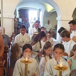 • in spielerischer Form die Antworten der hl. Messe kennen lernen und üben