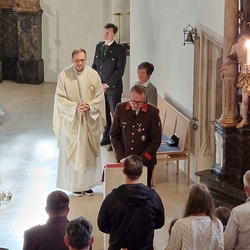 Ganz im Gedenken an die gefallenen, vermissten und verstorbenen Kameraden standen die Fürbitten, zu denen Teelichter am Altar entzündet wurden.