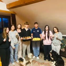 In einer gemeinsamen Backstunde haben wir am Tag zuvor kleine Köstlichkeiten zubereitet, die wir am Ende der Feier an die Gottesdienstbesucher*innen verteilen durften.