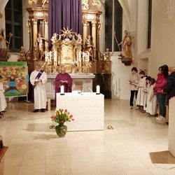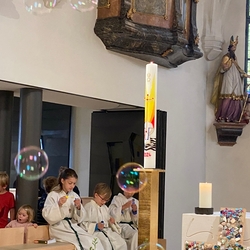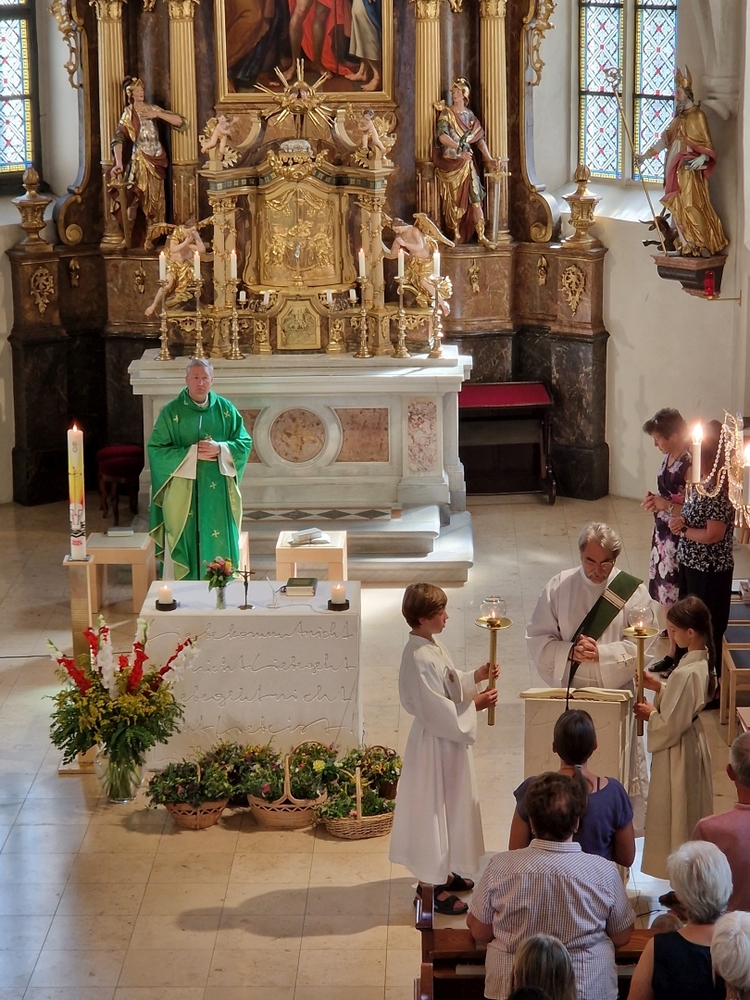 Zelebriert wurde die hl. Messe von Vikar Gerhard Hartmann und Diakon Michi Zepf, der die vielen Kinder zusammen mit den Minis zur Evangeliumsprozession und zum Vater-unser-Kreis einlud – spannende Momente für unsere Kleinen!