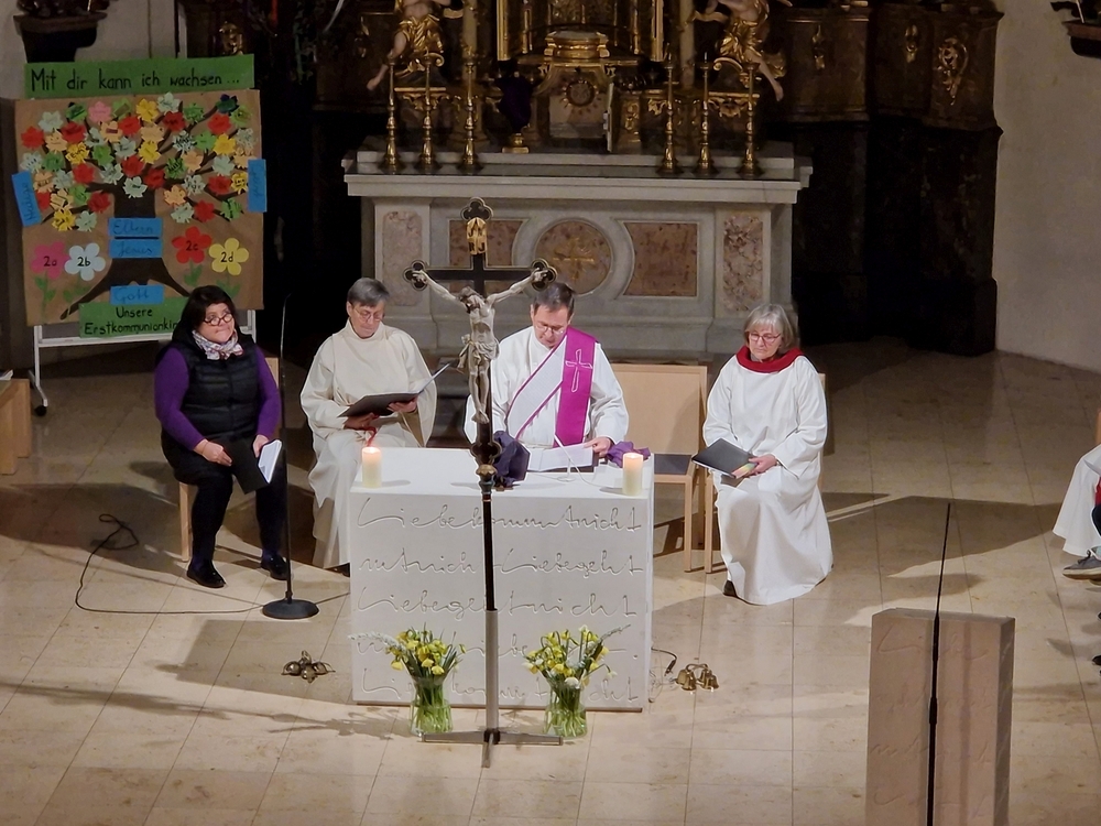 Beim Aschermittwoch-Gottesdienst mit Vikar Norbert Glaser und Diakon Michi Zepf erhielten die vielen Gläubigen, die gekommen waren, das Aschenkreuz auf die Stirn gezeichnet. Es ist ein starkes sichtbares Zeichen, das „hautnah“ an die Vergänglichkeit erinnert und uns auffordert, im Einklang mit dem Evangelium zu leben.