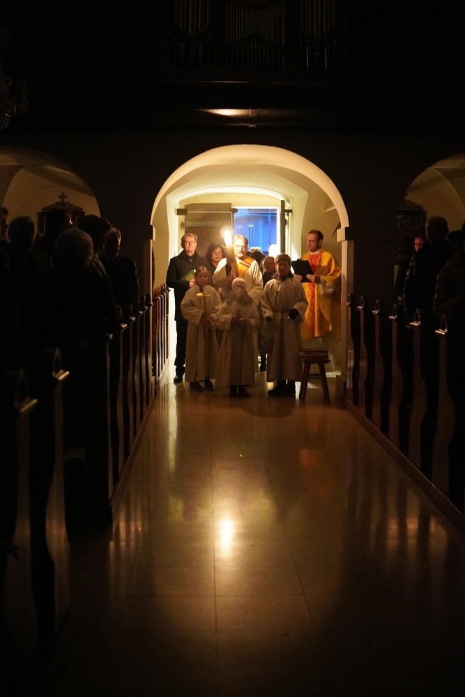 In dieser besonderen Messfeier bei Kerzenlicht besinnen wir uns in der fast dunklen Kirche auf das Kommen des Lichts, das alle Dunkelheit durchdringen wird!
