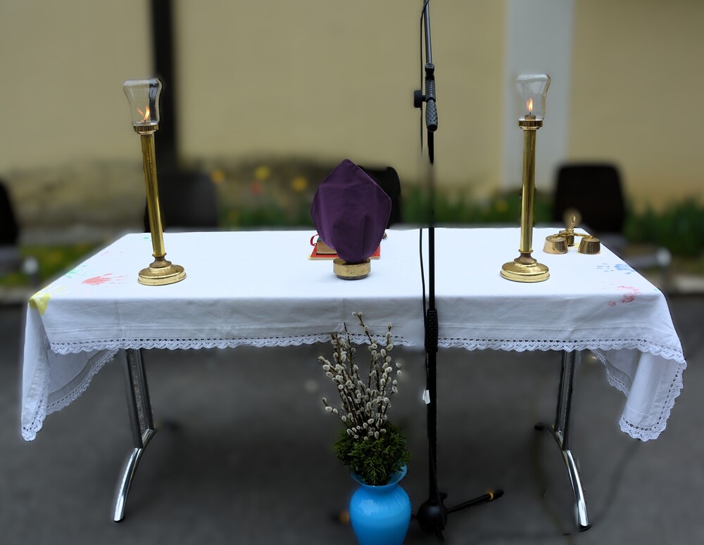 Palmweihe mit Vikar Gerhard Hatzmann am Kirchplatz